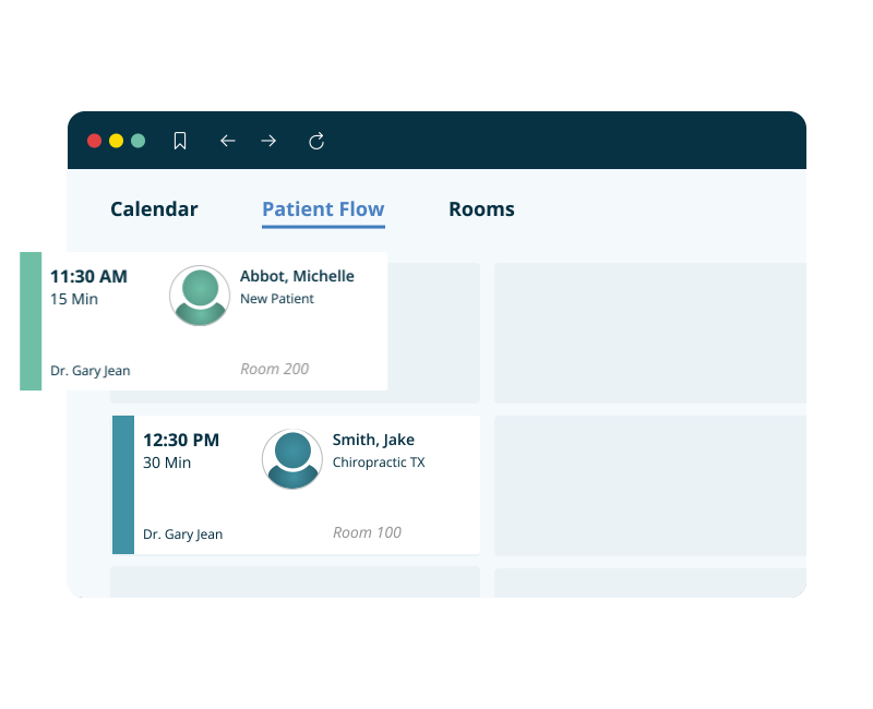 Plan your day and your next move with a live view of patient check-ins and flow tracking in your calendar.
