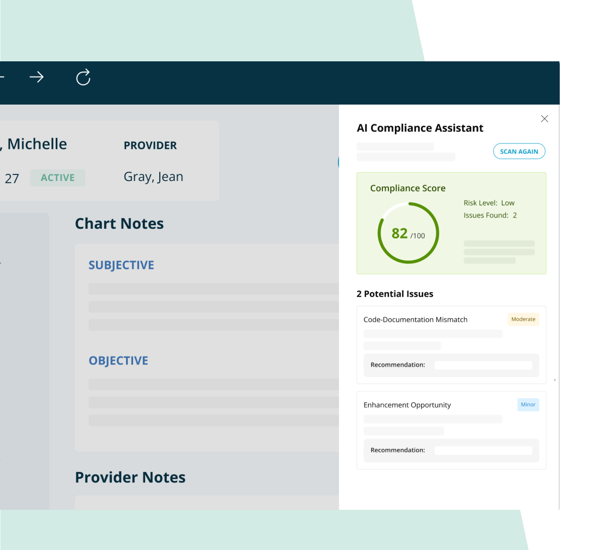 Compliance Scan is an AI powered tool from Rheo, built into the HIPAA compliant ChiroTouch platform. It automatically reviews every SOAP note and billing code in real time to help chiropractors: