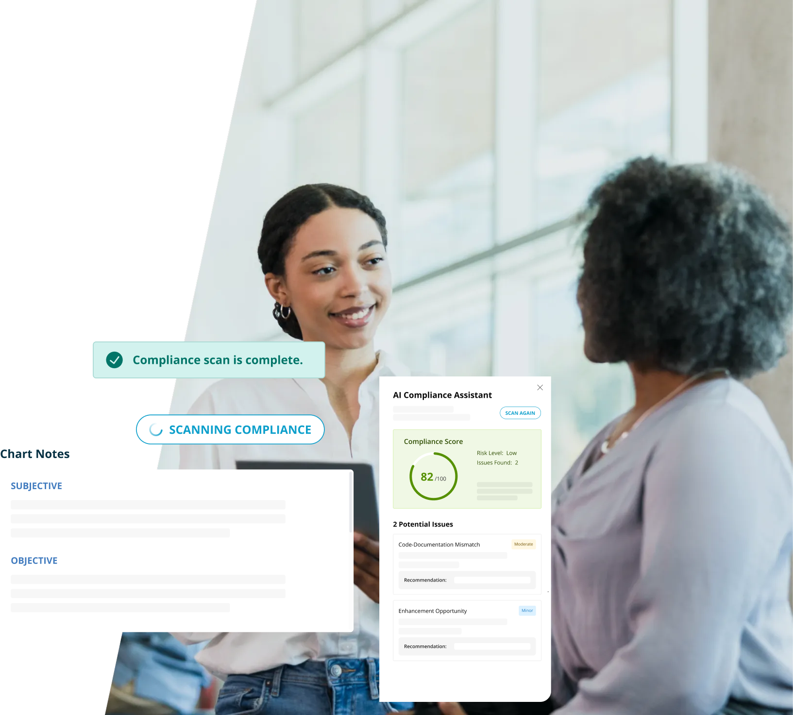 - Improve billing accuracy- Built in Compliance Scan validates documentation and coding before submission, reducing denials and rework.